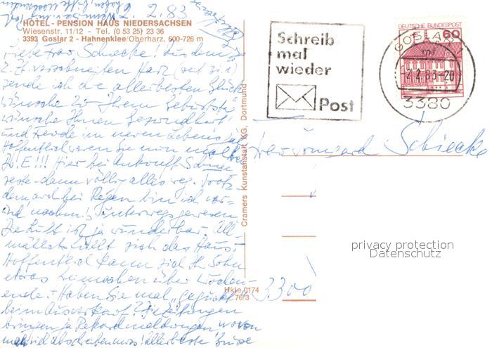 73722212 alte Postkarte Hahnenklee-Bockswiese Harz Hotel-Pension Haus Niedersachsen postalisch gelaufen Erhaltung siehe scans [LiesaD40] KatCode: 11110003153005