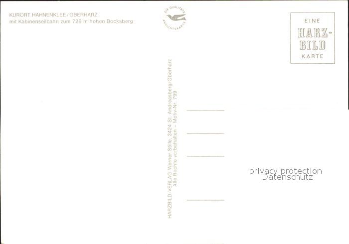 71974054 Hahnenklee-Bockswiese Harz Kabienenseilbahn postalisch nicht gelaufen KatCode: 11110003153005