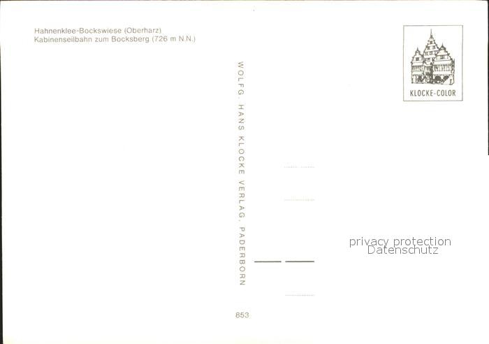 71924572 Hahnenklee-Bockswiese Harz Kabinenseilbahn Bocksberg postalisch nicht gelaufen Erhaltung siehe scans KatCode: 11110003153005