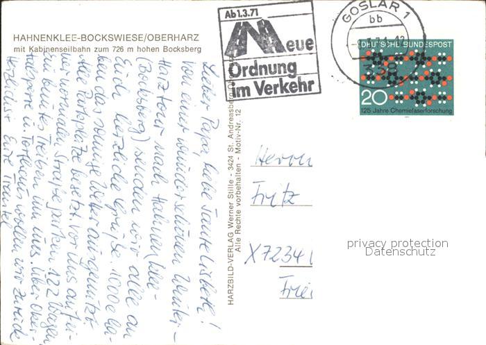 71908706 alte Postkarte Hahnenklee-Bockswiese Harz Kabinenseilbahn Bocksberg postalisch gelaufen Erhaltung siehe scans KatCode: 11110003153005