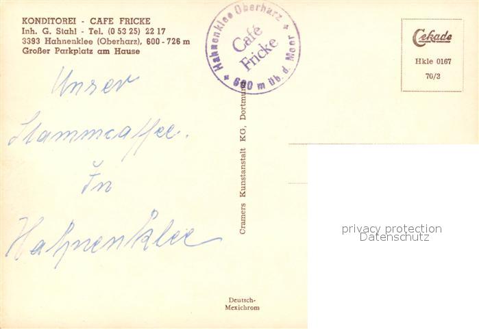 43352555 Hahnenklee-Bockswiese Harz Konditorei Cafe Fricke postalisch nicht gelaufen Erhaltung siehe scans [WerneD78] KatCode: 11110003153005