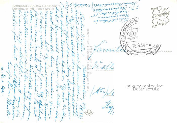 72860093 alte Postkarte Hahnenklee-Bockswiese Harz Kranichteich mit Irenen Quelle Uferweg postalisch gelaufen Erhaltung siehe scans [FriedD77] KatCode: 11110003153005