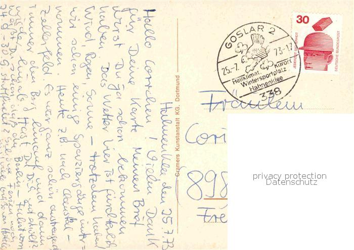 72846526 alte Postkarte Hahnenklee-Bockswiese Harz Kuranlagen Park Stabskirche postalisch gelaufen Erhaltung siehe scans [KathaD81] KatCode: 11110003153005