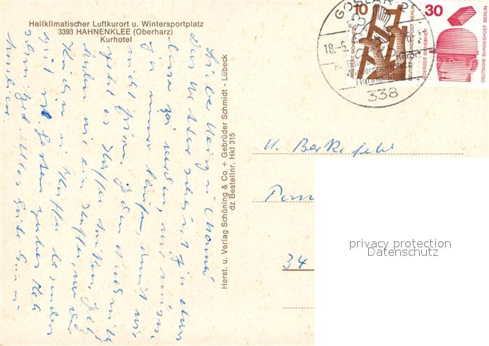 72971314 alte Postkarte Hahnenklee-Bockswiese Harz Kurhotel postalisch gelaufen Erhaltung siehe scans [PaolaD17] KatCode: 11110003153005