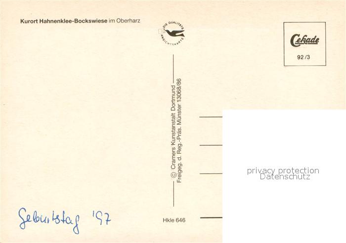 73703861 Hahnenklee-Bockswiese Harz Kurort im Oberharz postalisch nicht gelaufen Fliegeraufnahme Erhaltung siehe scans [FriedD77] KatCode: 11110003153005