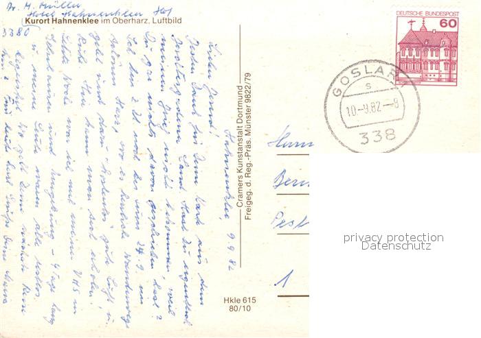 73169671 alte Postkarte Hahnenklee-Bockswiese Harz Kurort See Fliegeraufnahme postalisch gelaufen Erhaltung siehe scans [FriedD77] KatCode: 11110003153005