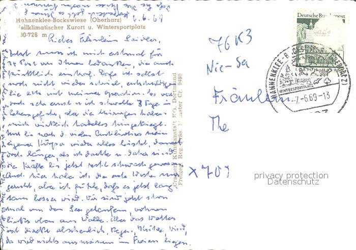 72370526 alte Postkarte Hahnenklee-Bockswiese Harz Kurort Wintersportplatz postalisch gelaufen Erhaltung siehe scans KatCode: 11110003153005