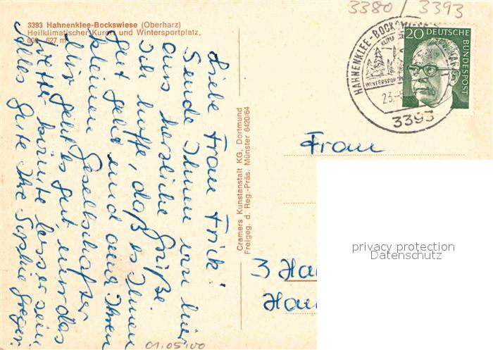 72918526 alte Postkarte Hahnenklee-Bockswiese Harz Kurort Wintersportplatz Fliegeraufnahme postalisch gelaufen Erhaltung siehe scans [FriedD77] KatCode: 11110003153005