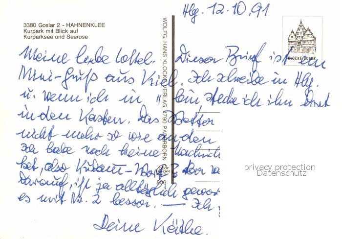 72627638 Hahnenklee-Bockswiese Harz Kurpark Kurparksee und Seerose postalisch nicht gelaufen Erhaltung siehe scans [WerneD78] KatCode: 11110003153005