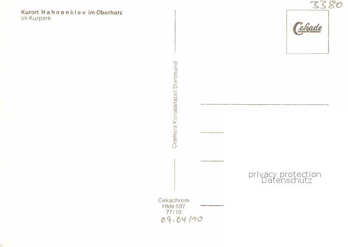 72911932 Hahnenklee-Bockswiese Harz Kurpark postalisch nicht gelaufen Erhaltung siehe scans [NatalD47] KatCode: 11110003153005