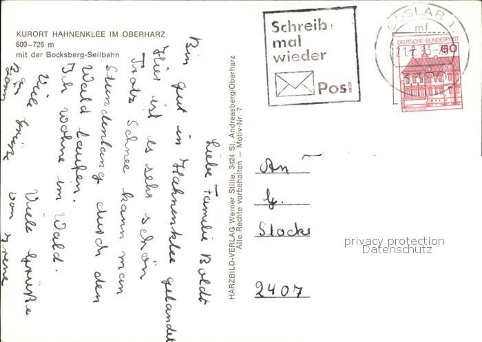72479312 alte Postkarte Hahnenklee-Bockswiese Harz mit Bocksberg Seilbahn postalisch gelaufen Erhaltung siehe scans KatCode: 11110003153005