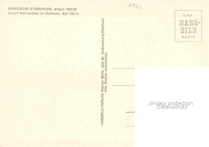 72889151 Hahnenklee-Bockswiese Harz Nordische Stabskirche postalisch nicht gelaufen Erhaltung siehe scans [LiesaD40] KatCode: 11110003153005