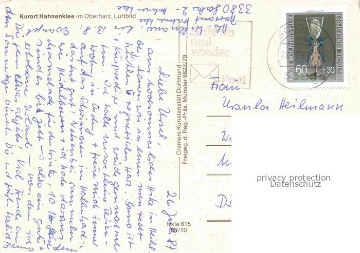 74026295 alte Postkarte Hahnenklee-Bockswiese Harz Panorama Kurort postalisch gelaufen Fliegeraufnahme Erhaltung siehe scans [FriedD77] KatCode: 11110003153005