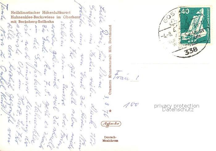 73164345 alte Postkarte Hahnenklee-Bockswiese Harz Panorama mit Bocksberg Seilbahn postalisch gelaufen Erhaltung siehe scans [WerneD78] KatCode: 11110003153005