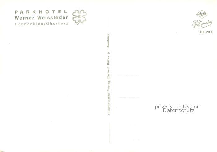 73774754 Hahnenklee-Bockswiese Harz Parkhotel Weissleder postalisch nicht gelaufen Erhaltung siehe scans [WerneD78] KatCode: 11110003153005