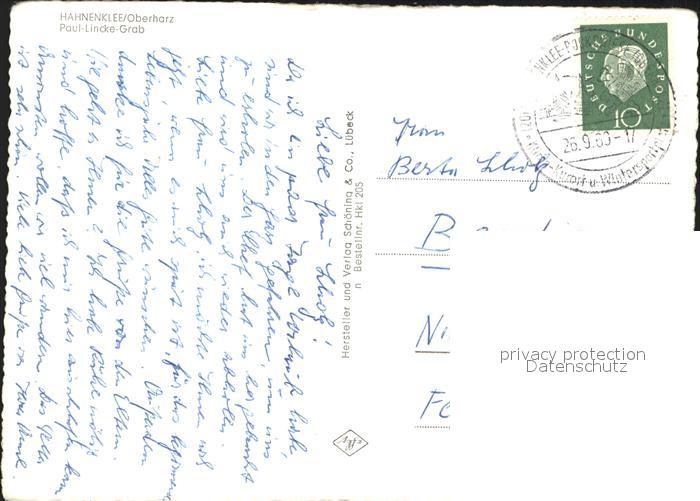 72216406 alte Postkarte Hahnenklee-Bockswiese Harz Paul Lincke Grab postalisch gelaufen Erhaltung siehe scans KatCode: 11110003153005