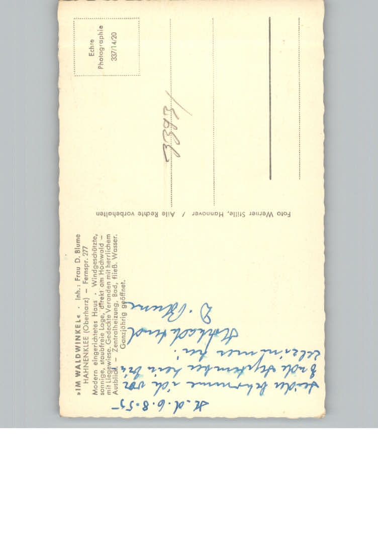 31167661 Hahnenklee-Bockswiese Harz Pension Im Waldwinkel postalisch nicht gelaufen KatCode: 11110003153005