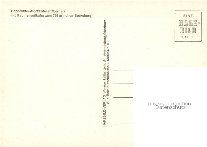 73128337 Hahnenklee-Bockswiese Harz Seilbahn postalisch nicht gelaufen Erhaltung siehe scans [PaolaD17] KatCode: 11110003153005