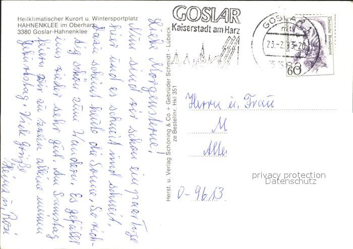 72378649 alte Postkarte Hahnenklee-Bockswiese Harz Skigebiet postalisch gelaufen Erhaltung siehe scans KatCode: 11110003153005