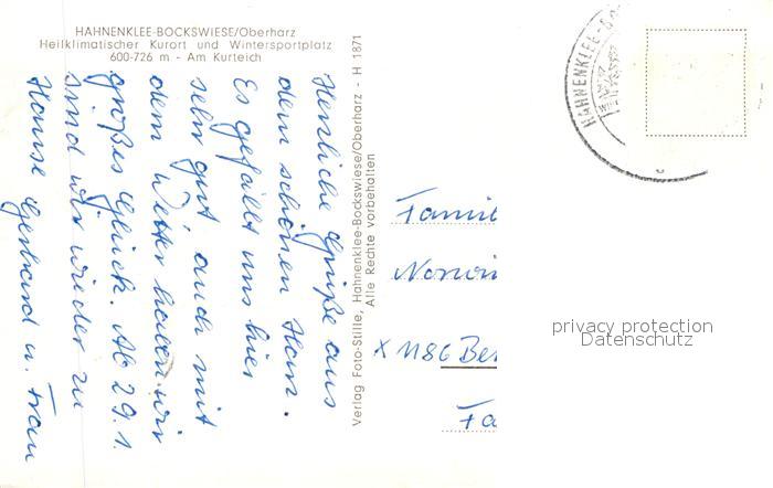 72948102 alte Postkarte Hahnenklee-Bockswiese Harz Winterpanorama Kurteich postalisch gelaufen Erhaltung siehe scans [FriedD77] KatCode: 11110003153005