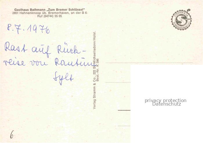 74150729 Hahnenknoop Loxstedt Bremerhaven Niedersachsen Gasthof Bathmann Gartenterrasse Park postalisch nicht gelaufen Erhaltung siehe scans [WerneD78] KatCode: 11110003352032