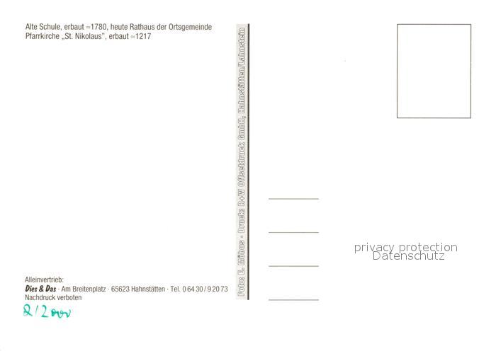 73201595 Hahnstaetten Alte Schule Rathaus Pfarrkirche Sankt Nikolaus postalisch nicht gelaufen Erhaltung siehe scans [KathaD81] KatCode: 11110007141051