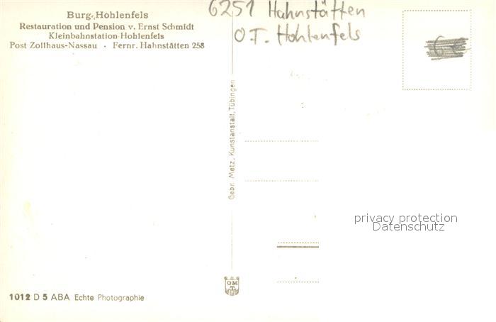 73696400 Hahnstaetten Burg Hohlenfels postalisch nicht gelaufen Erhaltung siehe scans [FriedD77] KatCode: 11110007141051