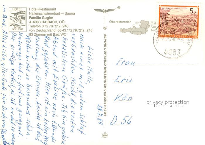 73517933 alte Postkarte Haibach Donau Hotel Donauschlinge Landschaftspanorama postalisch gelaufen Erhaltung siehe scans [FriedD77] KatCode: 11390312040505