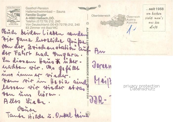 73732522 alte Postkarte Haibach Donau Schloegener Donauschlinge postalisch gelaufen Erhaltung siehe scans [LiesaD40] KatCode: 11390312040505