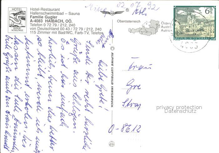 72179763 alte Postkarte Haibach Muehlkreis Fliegeraufnahme Hotel Donauschlinge postalisch gelaufen Erhaltung siehe scans KatCode: 11390313041610