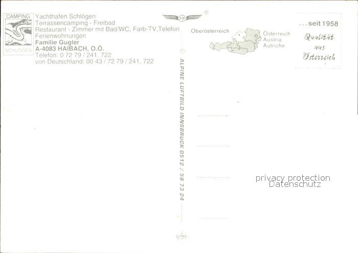 72035674 Haibach Muehlkreis Terrassencamping Schloegen Fliegeraufnahme Yachthafen Fahrgastschiff Seepanorama postalisch nicht gelaufen Erhaltung siehe scans KatCode: 11390313041610