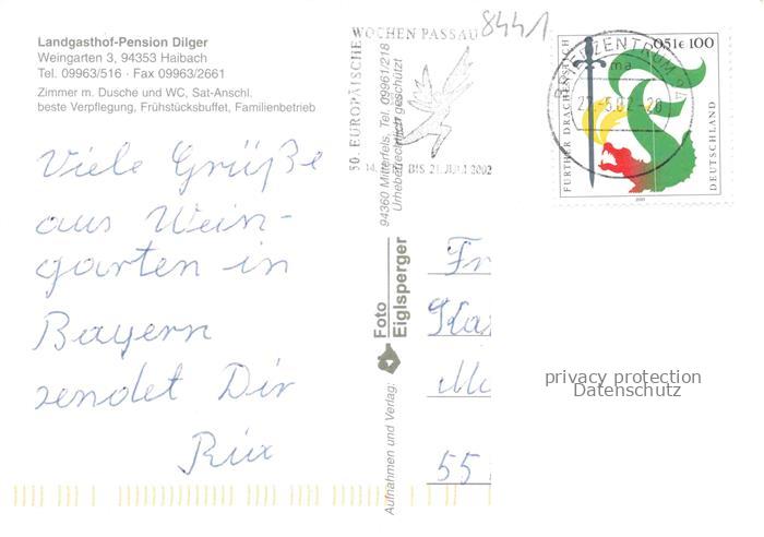 74049271 alte Postkarte Haibach Niederbayern Straubing-Bogen Landgasthof Pension Dilger Gastraum Pferdewagen Panorama postalisch gelaufen Erhaltung siehe scans [FriedD77] KatCode: 11110009278129