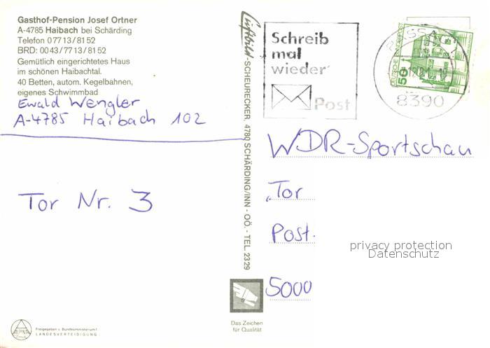 72761759 alte Postkarte Haibach Schaerding Gasthof Haibacher Hof postalisch gelaufen Erhaltung siehe scans [NatalD47] KatCode: 11390311041422