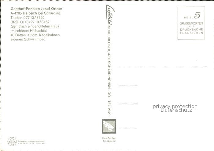 72437302 Haibach Schaerding Gasthof Pension Josef Ortner postalisch nicht gelaufen Erhaltung siehe scans KatCode: 11390311041422