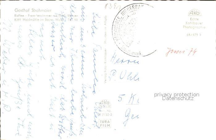 72312748 alte Postkarte Haidmuehle Am Weh zum Dreisessel postalisch gelaufen Erhaltung siehe scans KatCode: 11110009272122
