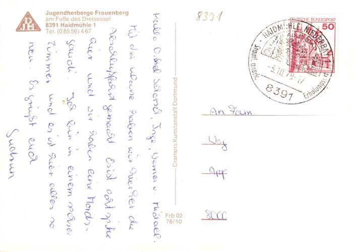73905663 alte Postkarte Haidmuehle Jugendherberge Frauenberg Gastraeume Tanzveranstaltung Tischtennisraum postalisch gelaufen Erhaltung siehe scans [FriedD77] KatCode: 11110009272122