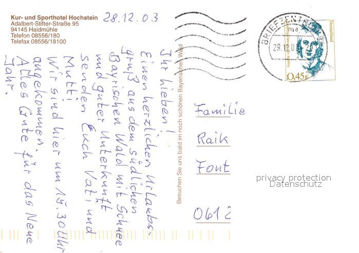 72931202 alte Postkarte Haidmuehle Kur Sporthotel Hochstein postalisch gelaufen Erhaltung siehe scans [KathaD81] KatCode: 11110009272122