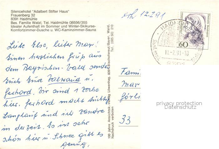 73753141 alte Postkarte Haidmuehle Silencehotel Adalbert Stifter Haus Panorama Langlaufloipe Gaststube postalisch gelaufen Erhaltung siehe scans [WerneD78] KatCode: 11110009272122