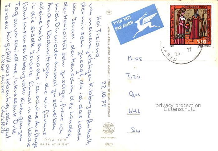 old postcard Haifa at night postalisch gelaufen Erhaltung siehe scans [WerneD78 kt116box]