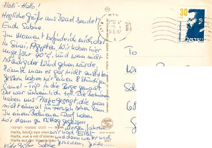 old postcard Haifa Israel Fliegeraufnahme postalisch gelaufen Erhaltung siehe scans [FriedD77]