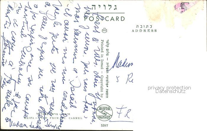 old postcard Haifa Panorama view from Mount Carmel postalisch gelaufen Erhaltung siehe scans