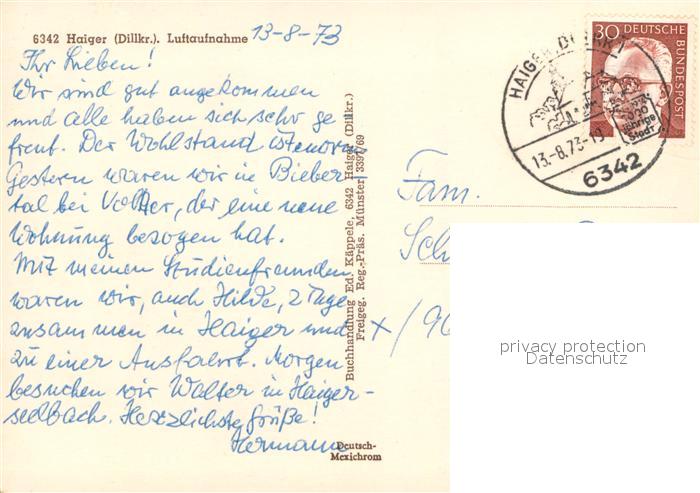 73647442 alte Postkarte Haiger Fliegeraufnahme postalisch gelaufen Erhaltung siehe scans [FriedD77] KatCode: 11110006532011