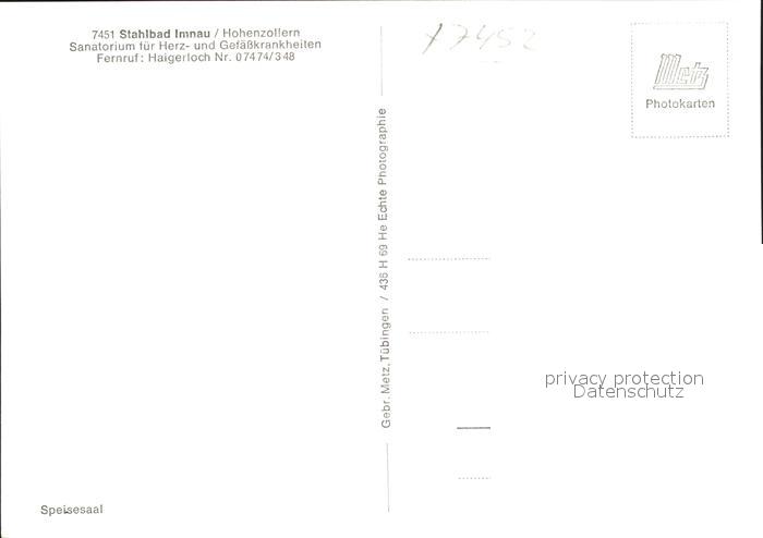 41760751 Haigerloch Stahlbad Imnau Hohenzollern Speisesaal postalisch nicht gelaufen Erhaltung siehe scans KatCode: 11110008417025