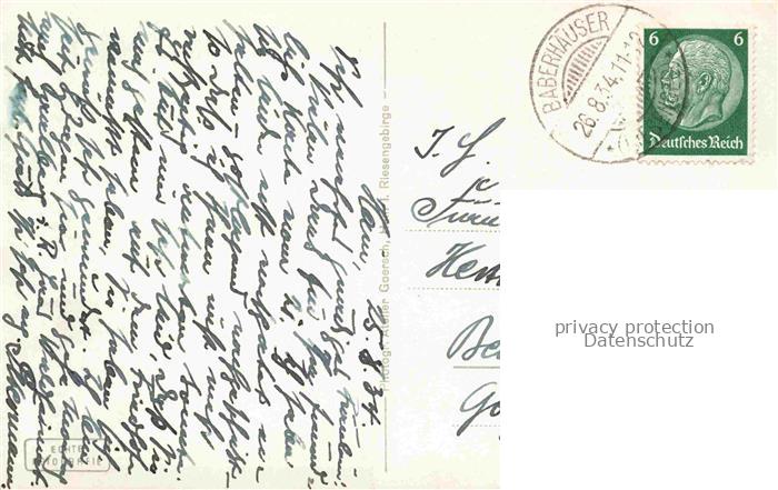 74032905 old postcard Hain Giersdorf Riesengebirge Podgorzy PL Panorama Luftkurort postalisch gelaufen Fliegeraufnahme Erhaltung siehe scans [FriedD77] KatCode: 11410