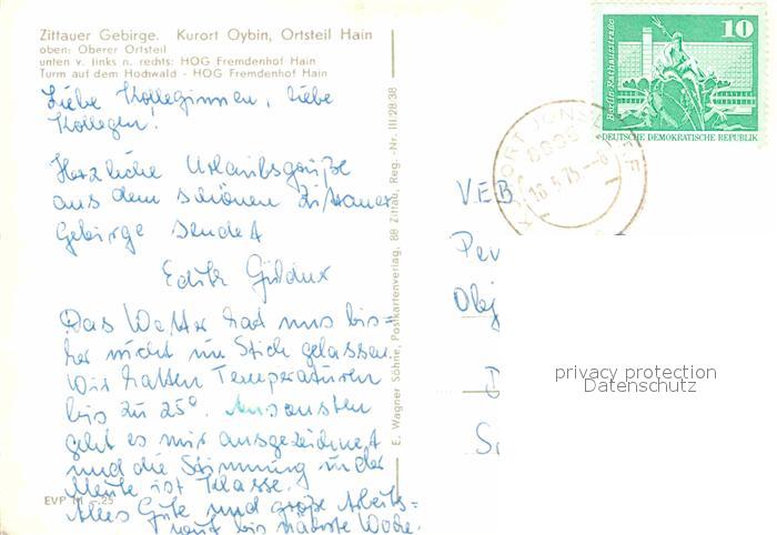 72712339 alte Postkarte Hain Oybin HOG Fremdenhof Turm Hochwald postalisch gelaufen Erhaltung siehe scans [FriedD77] KatCode: 11110014286360