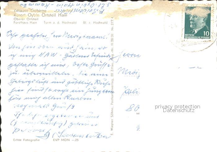 72350014 alte Postkarte Hain Oybin Ortsansicht Forsthaus Turm Hochwald Kurort Zittauer Gebirge postalisch gelaufen Erhaltung siehe scans KatCode: 11110014286360