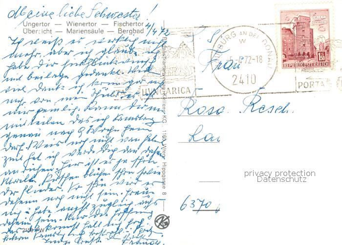 73155327 alte Postkarte Hainburg Donau Ungertor Wienertor Fischertor Panorama Mariensaeule Bergbad postalisch gelaufen Erhaltung siehe scans [WerneD78] KatCode: 11390127030710