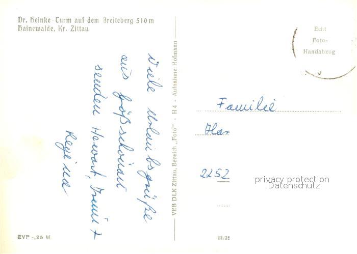73102554 alte Postkarte Hainewalde Heinke Turm Breiteberg postalisch gelaufen Erhaltung siehe scans [KathaD81] KatCode: 11110014286140