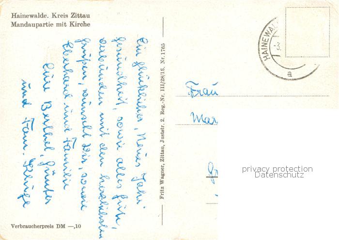 73764976 alte Postkarte Hainewalde Mandaupartie mit Kirche postalisch gelaufen Erhaltung siehe scans [WerneD78] KatCode: 11110014286140