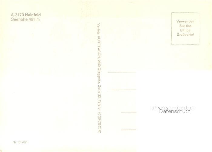 73601512 Hainfeld Niederoesterreich Landschaftspanorama Motiv mit Kirche Kapelle Hauptstrasse postalisch nicht gelaufen Erhaltung siehe scans [FriedD77] KatCode: 11390122031403
